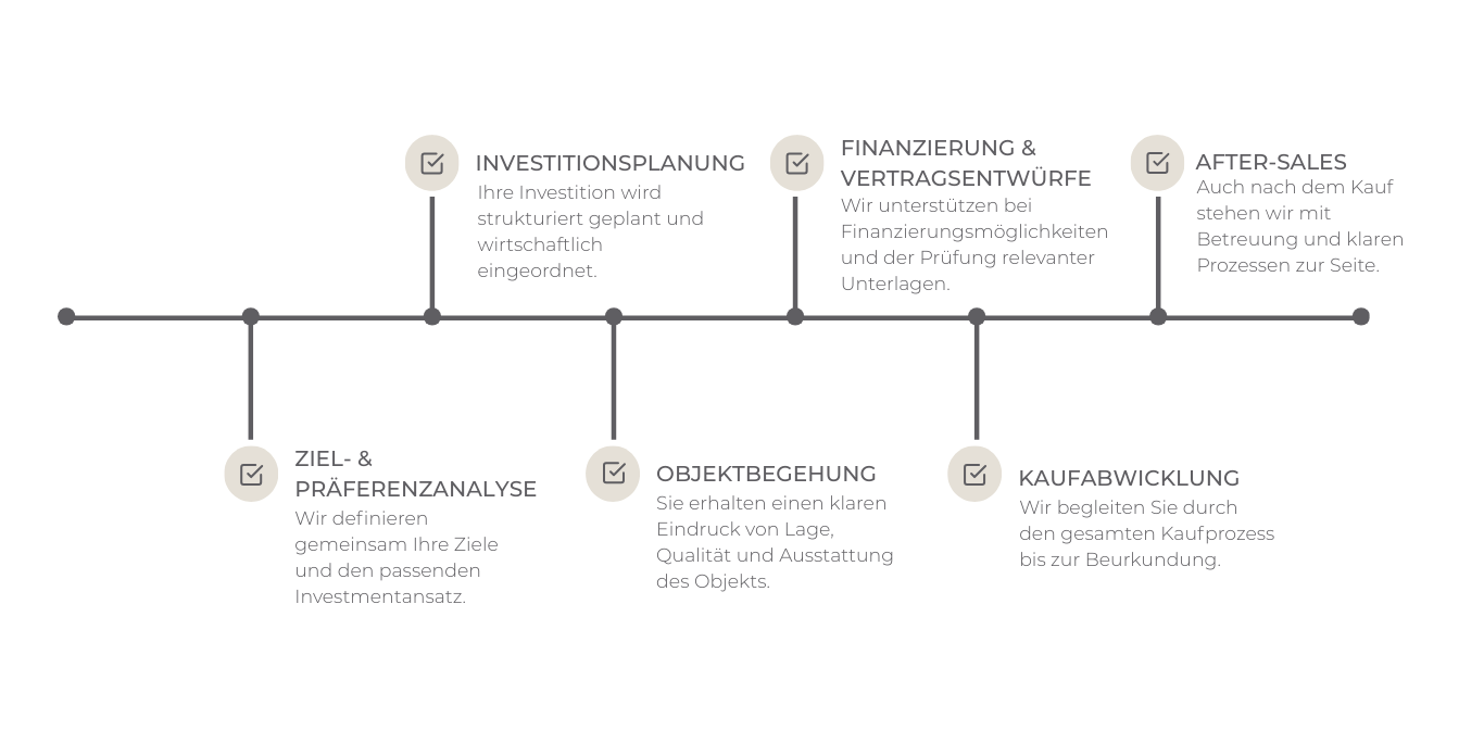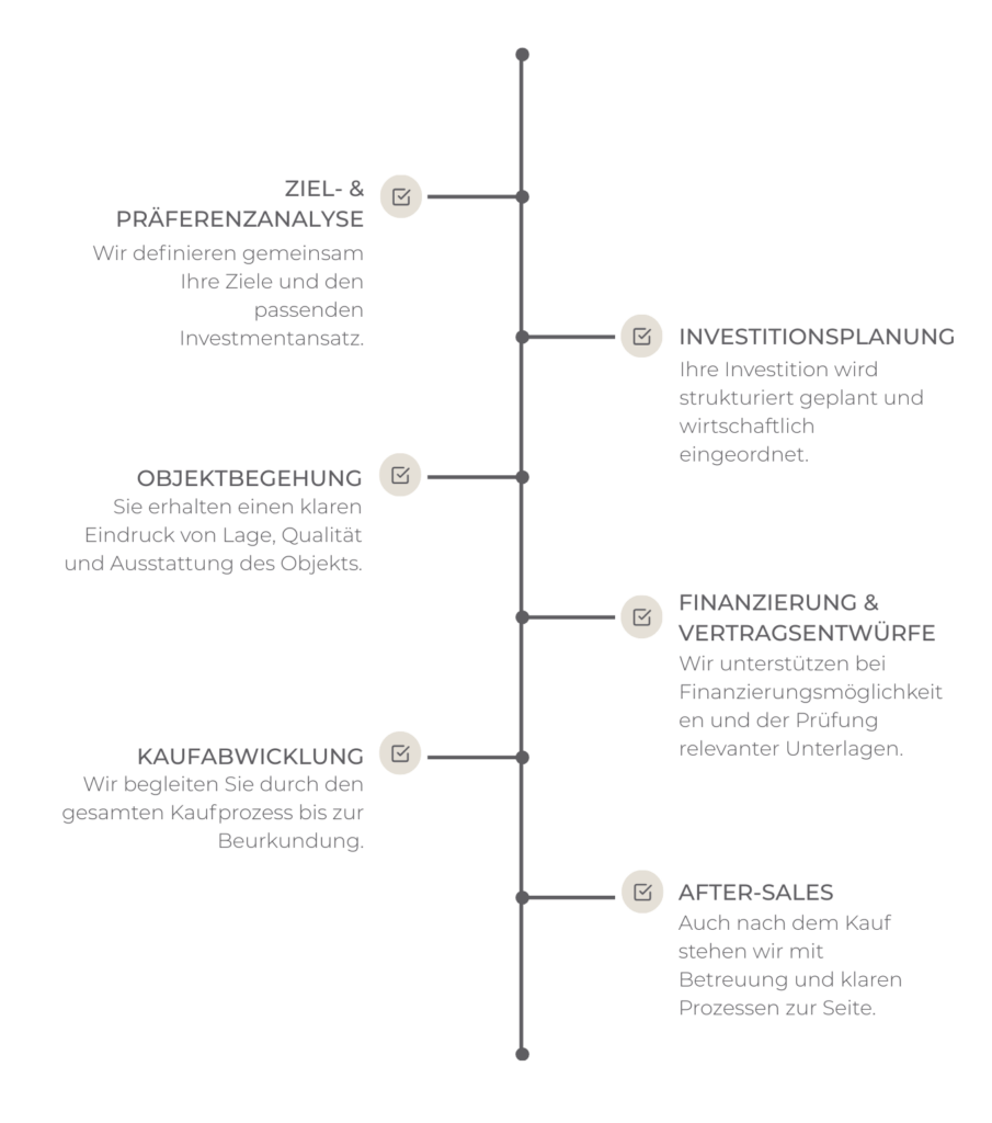 Mit unserem 360-Grad-Konzept begleiten wir Anleger umfassend – von der ersten Projektbewertung über die Finanzierung bis hin zur Übergabe. Dieser strukturierte Ansatz schafft Transparenz, Sicherheit und eine solide Grundlage für langfristig stabile Investments.
